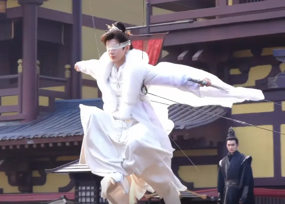 我看花絮的时候特别震撼,绿幕下面什么都没有,他却能仅凭听觉判断方向,挥剑的动作又精准又流畅。