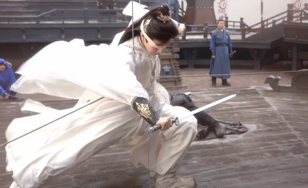 他为了演好打戏,他提前三个月就进组闭关训练,每天要挥剑 500 下,吊威亚吊 10 个小时,把 12 套剑招练得像肌肉记忆一样。