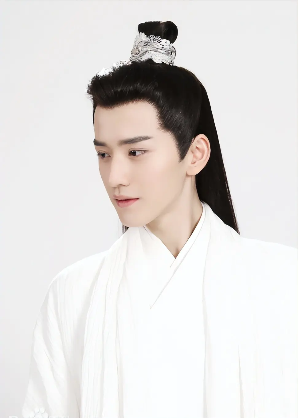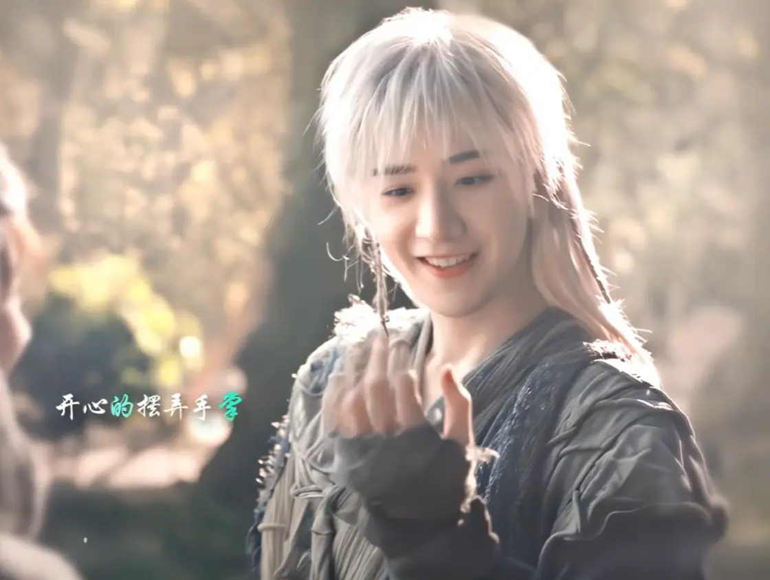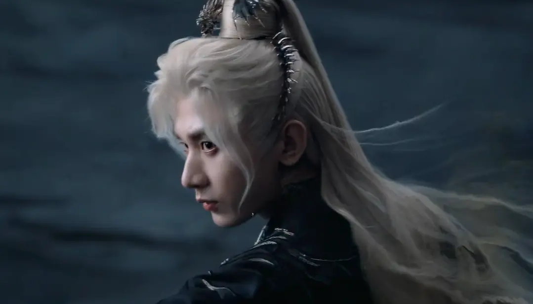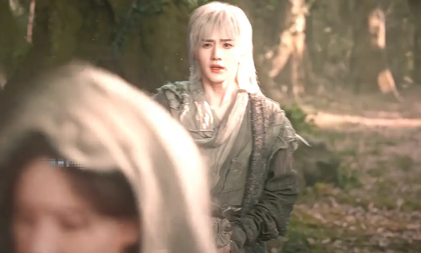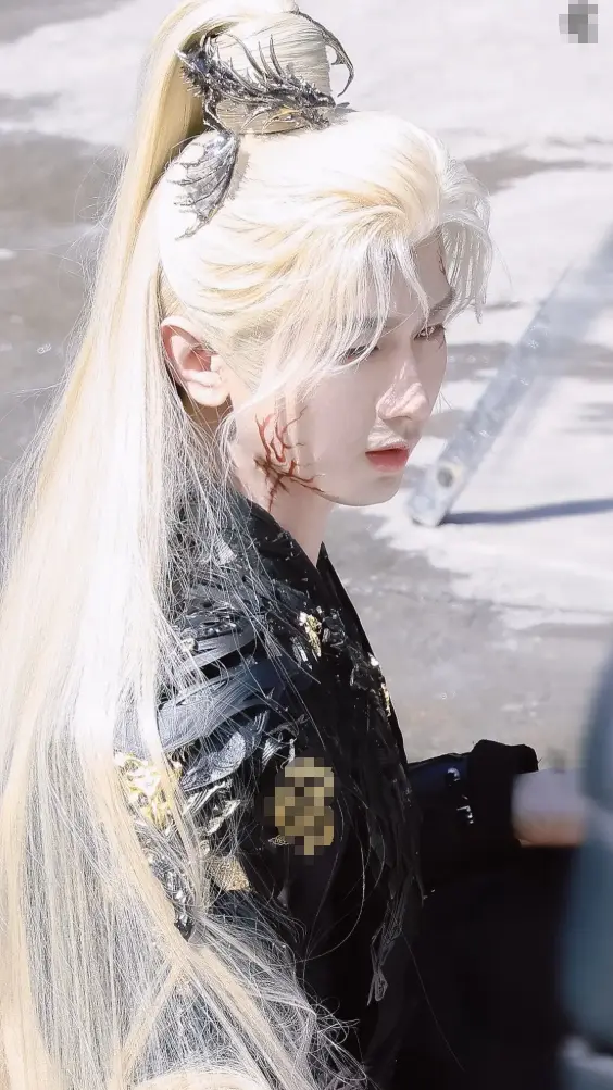 剧组给他做的白金发造型,不是那种浮夸的杀马特风格,而是泛着冷光,特别有剑客的清冷感。