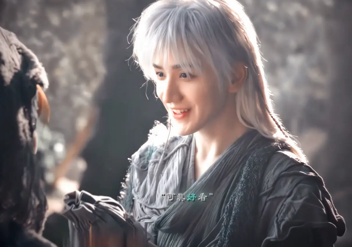 那一头蓬松又不失利落的白发,没有做成夸张的 “非主流” 样式,而是带着自然的蓬松感,发尾微微泛着淡银光泽,衬得他肤色更显清透。